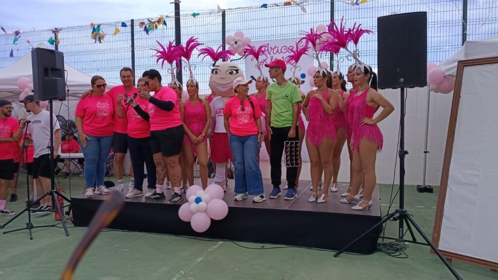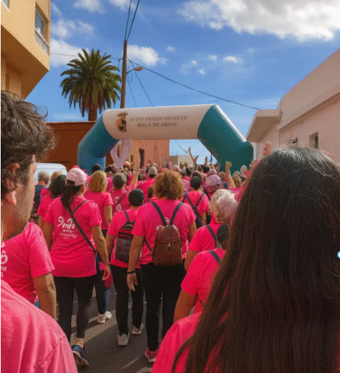 La marcha, titulada “Arico se mueve por la Vida”, arrancó puntual entre aplausos. Desde la histórica plaza hasta el Polideportivo municipal, una marea rosa avanzaba serena, encabezada por las mujeres de la Asociación con la pancarta del lazo rosa. Representantes de la Fundación Canaria Carrera por la Vida sonreían ante la respuesta del vecindario. Con una aportación simbólica de siete euros, los participantes recibían una camiseta conmemorativa: en cuestión de minutos, esa prenda se convirtió en un lazo común, un signo visible de unión.