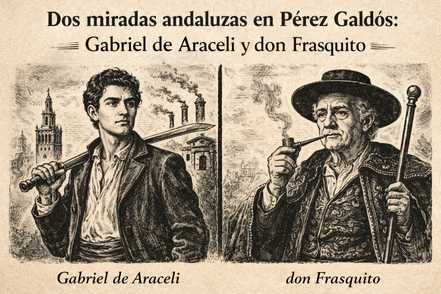 En la obra de Benito Pérez Galdós, Andalucía no aparece solo como un “lugar” en el mapa: también funciona como mirada (una manera de contar) y como memoria (una tierra que los personajes llevan a cuestas incluso cuando viven lejos). Dos andaluces muy distintos lo muestran bien: Gabriel de Araceli, de los Episodios nacionales, y don Frasquito Ponte Delgado, de Misericordia.