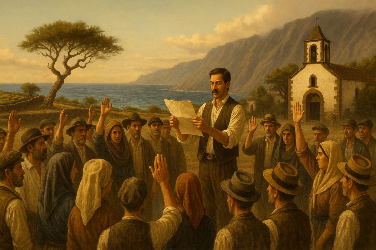 En el contexto general de Canarias, aquellos años traían vientos de cambio. La sociedad isleña presionaba por mayores cotas de autonomía frente al poder central de Madrid. Fruto de esas reivindicaciones, en 1912 las Cortes españolas aprobaron la llamada Ley de Cabildos Insulares, que otorgaba a cada isla un gobierno propio (los cabildos) y permitía reorganizar la administración local para adaptarla mejor a la realidad insular. Esta reforma abrió una oportunidad histórica para las aspiraciones de los herreños del Valle de El Golfo. Animados por el nuevo clima político, los vecinos más destacados de la zona –agricultores, ganaderos y pequeños propietarios, junto con líderes naturales de cada pago o poblado– organizaron asambleas vecinales y redactaron peticiones formales solicitando la creación de un municipio independiente en el oeste de El Hierro. Dicho de otro modo, lanzaron su grito: un llamamiento colectivo pidiendo dignidad, servicios básicos y voz propia en la gestión de la isla.