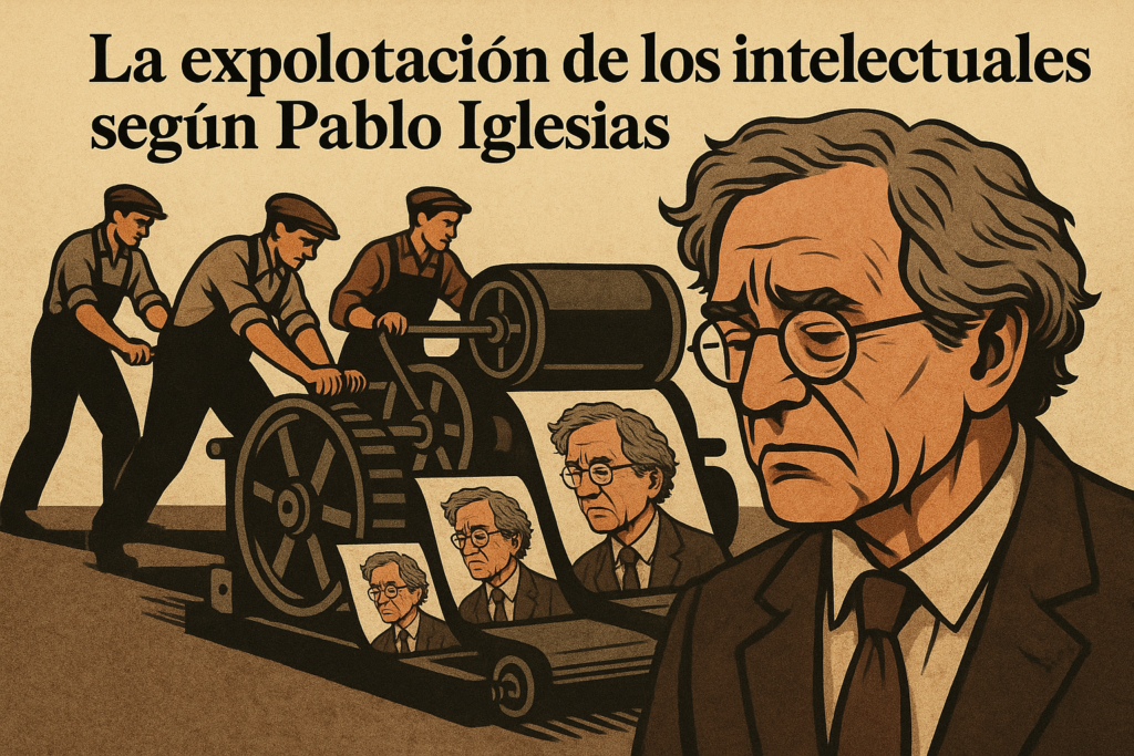 El viejo líder socialista publicó en enero de 1924 un trabajo en su línea sobre la difusión de la idea de conciencia de clase en relación con la explotación que padecían los intelectuales, los “obreros intelectuales”, según el título del artículo. Este trabajo trata de esta cuestión, una de las más interesantes, a nuestro entender, sobre el concepto de proletariado en el marxismo. Pero, sobre todo, esta cuestión debe vincularse con la polémica que hubo en los primeros decenios de la historia del PSOE sobre los intelectuales, sobre si tenían cabida en el mismo, hasta que con la llegada de un nutrido grupo de los mismos ya en el siglo XX terminó por zanjarse. Las afirmaciones que aquí reseñamos confirmarían el fin de ese debate. Los intelectuales solamente tenían cabida en el socialismo porque sufrían la misma explotación que los trabajadores manuales. Esa es la tesis del pensamiento de Iglesias en este trabajo.