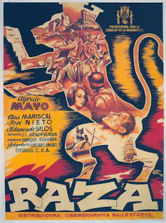 Dos películas cimentaron esta historia oficial: Rojo y negro (1942, Carlos Arévalo) que, aunque no tuvo la incidencia ni el éxito de la siguiente, sí repudiaba a la democracia como sistema de gobierno (en una imagen muy alegórica en la que los parlamentarios aparecen con los ojos vendados); y Raza (1941, José Luis Sáez de Heredia), con guion escrito por Franco (bajo seudónimo).