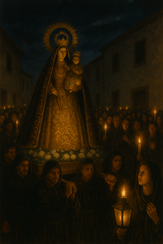 La devoción a la Virgen de la Candelaria, iniciada en época prehispánica con el pueblo guanche, perduró y se potenció tras la conquista de Tenerife por Castilla. Cuando en 1496 los europeos culminaron la incorporación de la isla a la Corona de Castilla, se encontraron con que la imagen de la Virgen ya era venerada por los naturales con fama de milagrosa. De hecho, el conquistador Alonso Fernández de Lugo –nombrado Adelantado de Tenerife– reconoció la estrecha relación espiritual entre los guanches y “su” Virgen. En un gesto político y religioso, Fernández de Lugo y el cabildo insular decidieron respetar y honrar ese vínculo especial, concediendo a los guanches el privilegio de portar las andas (la plataforma o trono) de la Virgen en las procesiones religiosas. Así, los antiguos aborígenes (ya convertidos al cristianismo en su mayoría tras la conquista) mantuvieron un papel protagonista en las fiestas en honor a Nuestra Señora de Candelaria. Durante siglos incluso pleitearon ante las autoridades civiles y eclesiásticas para no perder este privilegio ancestral de llevar en hombros a la Virgen, considerado un honor heredado de sus antepasados. Gracias a esa tenacidad, aún hoy, cada 14 de agosto, en la víspera de la festividad principal de la Patrona, un grupo representativo conocido como los Guanches de Candelaria acompaña y carga la imagen durante la procesión nocturna, rememorando aquellos primeros guanches que la trasladaron siglos atrás. Esta tradición, llamada la Ceremonia Guanche, no solo recrea el hallazgo de la Virgen en la playa y los milagros subsiguientes, sino que reafirma la identidad cultural canaria al reconocer la herencia indígena dentro de la fe actual.