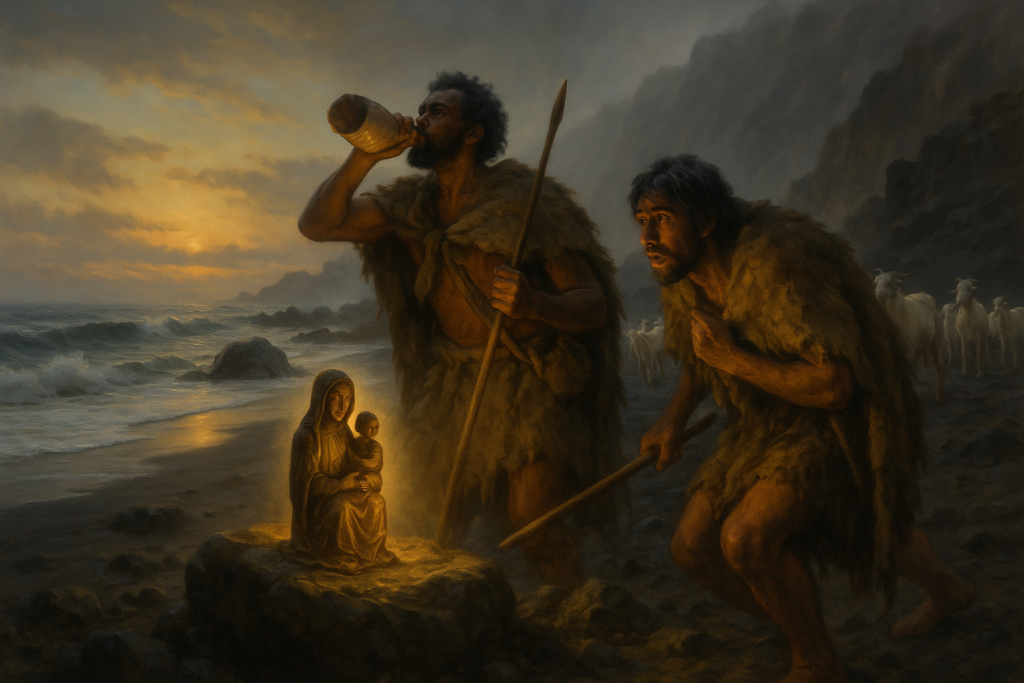 Cuando los pastores relataron lo sucedido, el mencey guanche de Güímar (el Mencey del Viernes en nuestra narración) decidió acudir personalmente al lugar acompañado de sus consejeros y algunos miembros de su pueblo. En aquel entonces, para un líder indígena, la protección de su gente incluía interpretar los signos de los dioses y lo desconocido. Al llegar a la playa de Chimisay y contemplar con sus propios ojos a la enigmática mujer con el niño, quedó asombrado: era evidente que no se trataba de alguien común. La figura permanecía inmóvil y silenciosa, con una serenidad casi sobrehumana. El mencey intentó comunicarse hablándole, quizás en lengua guanche, pero ella no respondió ni se movió, acrecentando el desconcierto y la veneración de los presentes.
