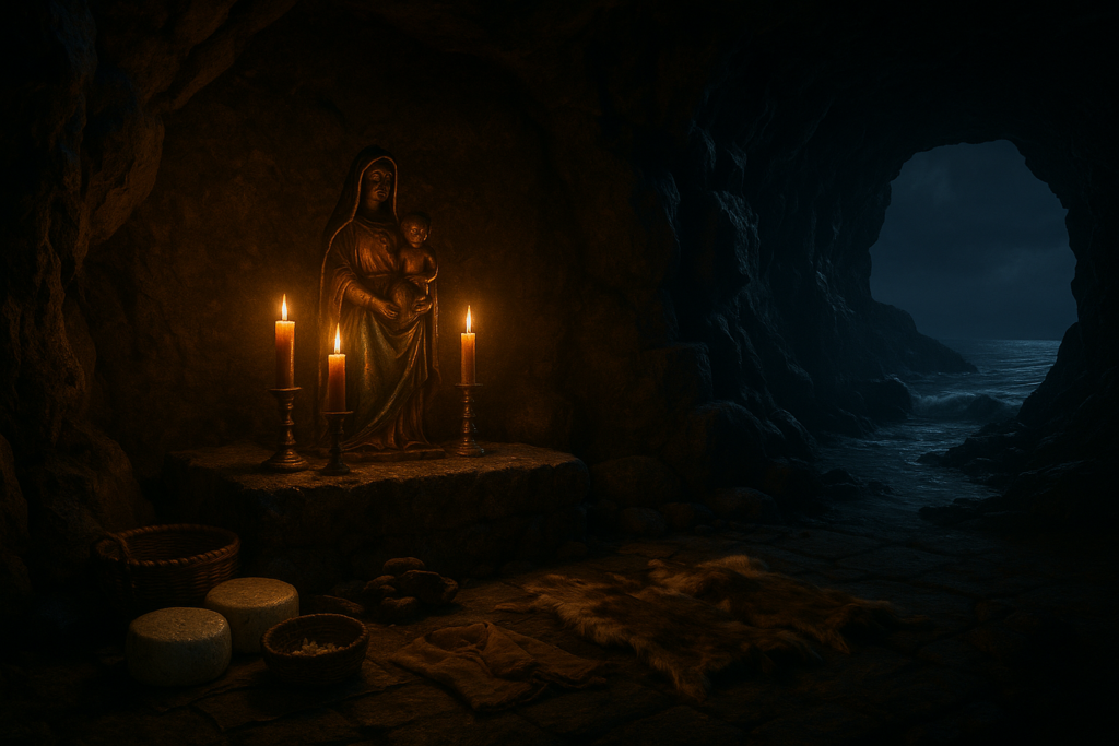 Tras reconocer el carácter sagrado de la imagen, el mencey de Güímar ordenó que fuera trasladada definitivamente a la Cueva de Achbinico, una gruta cercana a la costa (detrás de donde hoy se levanta la Basílica de Candelaria) para que todos pudieran honrarla públicamente. Allí los guanches comenzaron a rendirle culto con sus propias costumbres. Se dice que cuando la noticia de la “celestial aparición” se difundió por Tenerife, multitudes de guanches de todos los bandos de la isla acudieron a venerar a Chaxiraxi, considerándola un regalo de lo Alto. Era tradición llevar presentes al visitar tierras de otros menceyes o en actos de gran importancia; en este caso, los visitantes ofrecieron un enorme rebaño de ganado (cabras, ovejas) como ofrenda colectiva a la Virgen, en testimonio de su devoción. A ojos del mencey y de su pueblo, estos gestos de generosidad y reconocimiento sellaban una especie de pacto espiritual: la Virgen había mostrado su poder y benevolencia con milagros, y los guanches, a cambio, le ofrecían los mejores bienes que poseían y su lealtad reverente. De este modo, La Candelaria –como terminaría llamándose por asociarse luego con la fiesta cristiana de la Luz o las Candelas– quedó incorporada en el imaginario guanche como protectora y madre, una figura sagrada que, aun siendo originalmente cristiana, fue plenamente adoptada en la religiosidad indígena.