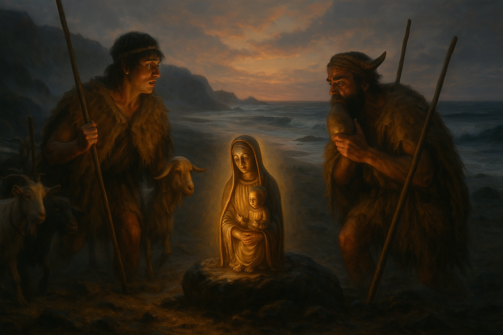La aparición de la Virgen de la Candelaria en Tenerife está documentada por la tradición oral recogida luego por cronistas. No existe consenso absoluto sobre la fecha exacta, pero la versión más aceptada señala que ocurrió antes de la conquista castellana de la isla (que fue en 1496), aproximadamente 95 años antes, hacia 1392. Aquella primera aparición mariana en Canarias tuvo lugar en la desembocadura del barranco de Chimisay, en la costa del menceyato (territorio) de Güímar, al sureste de Tenerife. Según la leyenda, dos pastores guanches fueron los primeros en encontrar la imagen: una pequeña escultura de una mujer con un niño en brazos, de aspecto extraño para ellos, de pie sobre una roca cerca de la playa. Era un tiempo en el que Tenerife se dividía en varios menceyatos gobernados por reyes locales o menceyes, entre los cuales estaba el de Güímar. La noticia del hallazgo pronto llegaría a oídos del mencey de esa comarca –a quien aquí nos referimos como el Mencey del Viernes, representando la autoridad guanche que presenció los hechos–, marcando el inicio de una devoción que uniría la fe aborigen con la cristiana.