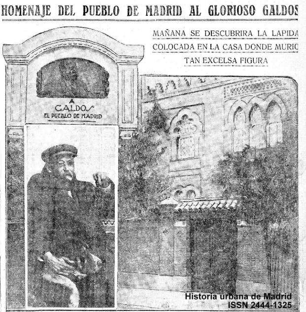 El último día del año 1923, poco antes de cumplirse el cuarto aniversario de la muerte de Galdós, un obrero madrileño, persona tan humilde que ni su nombre ha quedado en los anales de la historia, colocaba una lápida compuesta por varios azulejos en la que podía leerse: «AQUÍ VIVIÓ Y MURIÓ BENITO PÉREZ GALDÓS».