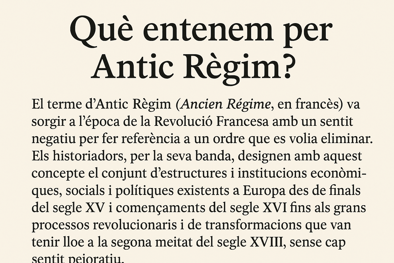 El terme d’Antic Règim (Ancien Régime, en francès) va sorgir a l’època de la Revolució Francesa amb un sentit negatiu per fer referència a un ordre que es volia eliminar.