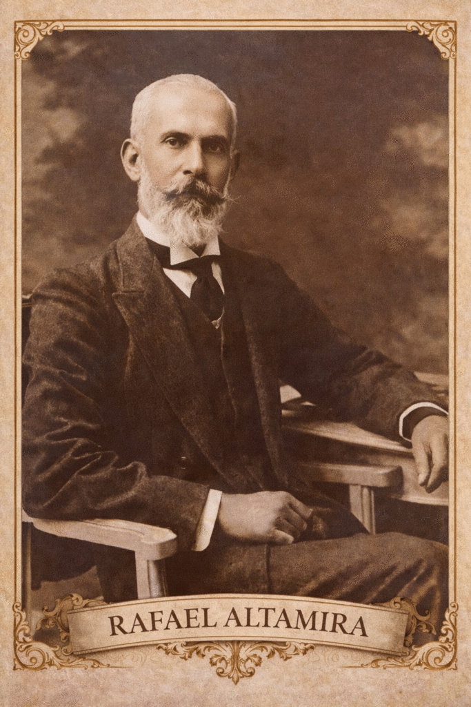 La figura de Rafael Altamira y Crevea (1866–1951) se erige como una de las más relevantes del panorama intelectual español contemporáneo, no solo por la amplitud de su obra, sino por la coherencia entre pensamiento, acción pedagógica y compromiso cívico. Su trayectoria vital puede comprenderse a través de diversas etapas que reflejan tanto su evolución personal como su proyección internacional.